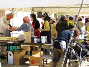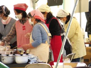豚汁、かやく炊き込みご飯、パンダ焼き、ぜんざい、などが振る舞われました。宮前町自治会役員、民生委員、それぞれ区の方々の皆さんのお力でできてるものと思いました。最後には亀岡牛の当たる抽選会が行われ楽しい一日を過ごすことが出来たのではないでしょうか?